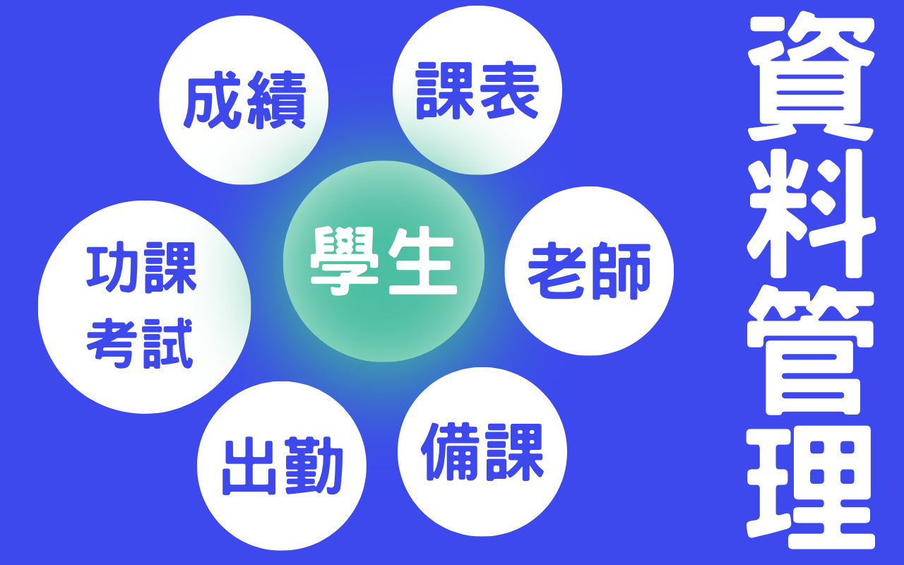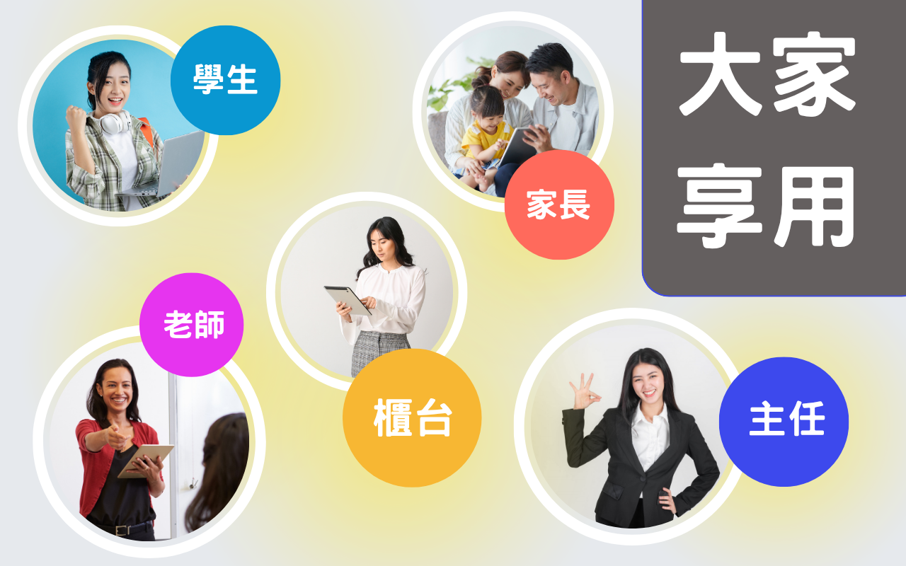 線上線下整合管理平台,能大量提升管理效率、優化日常營運、改善學業品質、提高家長滿意度。學生可以輕鬆取得課程資源並繳交作業、老師能開線上課、家長能隨時透過成績單掌握孩子的學習進度、主任能有效管理全校營運、櫃台老師能省去繁瑣重複的工作 (聽錄音、準備聯絡簿、檢查功課、記錄成績,回覆家長問題等)。